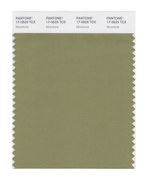 Mosstone is a medium-toned color from the Pantone TCX collection, identified by the code 17-0525 TCX. This cool tone with its balanced character makes it an excellent choice for natural products, military themes, and earthy design.
