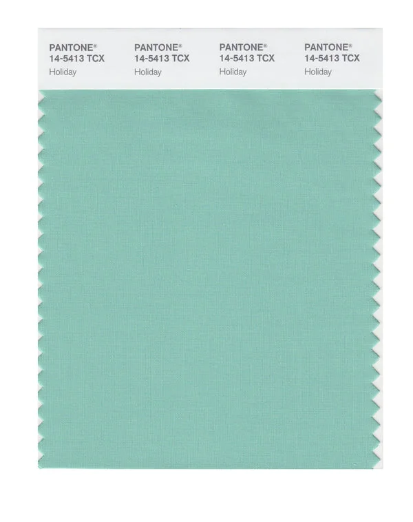 Holiday is a medium-toned color from the Pantone TCX collection, identified by the code 14-5413 TCX. This cool tone with its balanced character makes it an excellent choice for tropical themes, jewelry design, and exotic branding.
