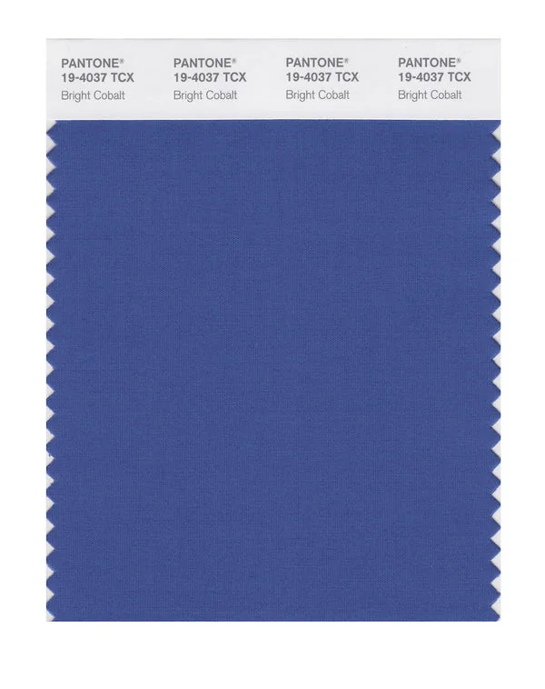 Bright Cobalt is a medium-toned color from the Pantone TCX collection, identified by the code 19-4037 TCX. This cool tone with its balanced character makes it an excellent choice for premium branding, luxury services, and sophisticated design.