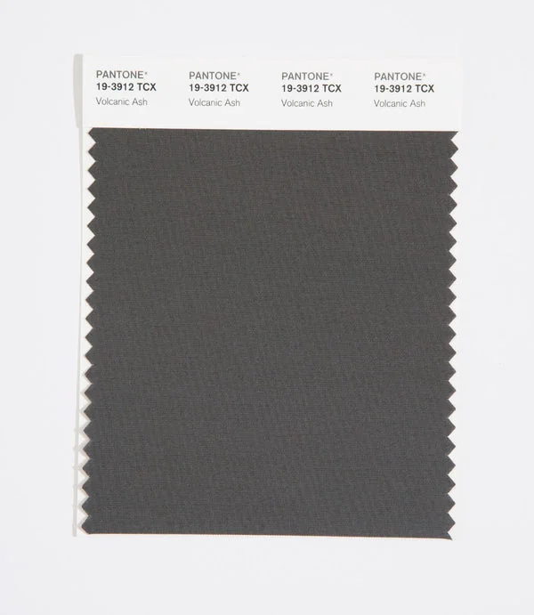 Volcanic Ash is a deep and rich black from the Pantone TCX collection, identified by the code 19-3912 TCX. This cool tone with its balanced character makes it an excellent choice for luxury branding, formal wear, and sophisticated design.