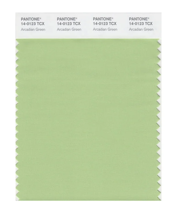 Arcadian Green is a medium-toned green from the Pantone TCX collection, identified by the code 14-0123 TCX. This cool tone with its balanced character makes it an excellent choice for sustainability, nature brands, and eco-friendly design.