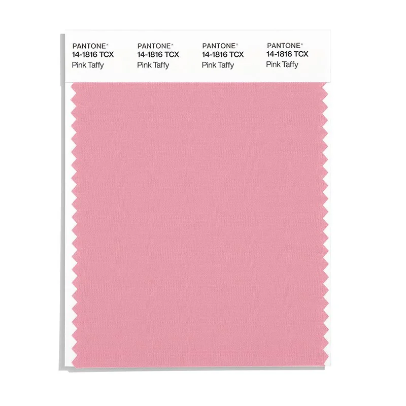 Pink Taffy is a light and airy color from the Pantone TCX collection, identified by the code 14-1816 TCX. This warm tone with its balanced character makes it an excellent choice for romantic branding, luxury beauty, and elegant design.