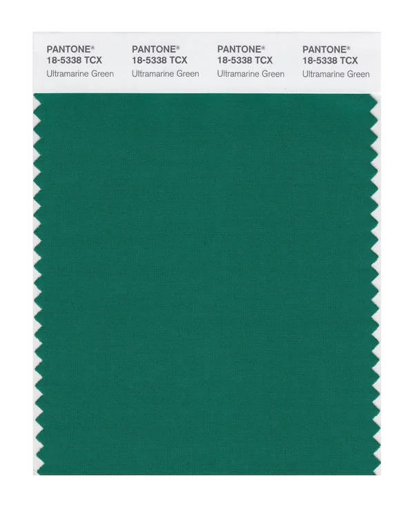 Ultramarine Green is a deep and rich color from the Pantone TCX collection, identified by the code 18-5338 TCX. This cool tone with its vibrant and bold character makes it an excellent choice for sophisticated branding, medical products, and calming design.