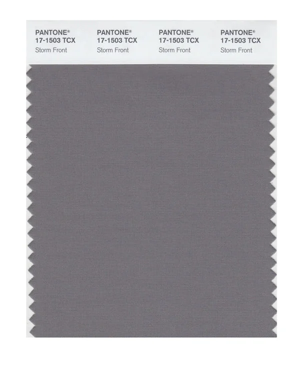 Storm Front is a medium-toned color from the Pantone TCX collection, identified by the code 17-1503 TCX. This warm tone with its balanced character makes it an excellent choice for sophisticated neutrals, urban design, and modern aesthetics.