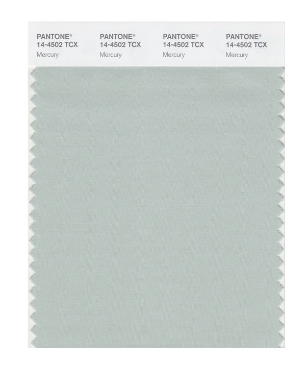 Mercury is a light and airy green from the Pantone TCX collection, identified by the code 14-4502 TCX. This cool tone with its balanced character makes it an excellent choice for sustainability, nature brands, and eco-friendly design.