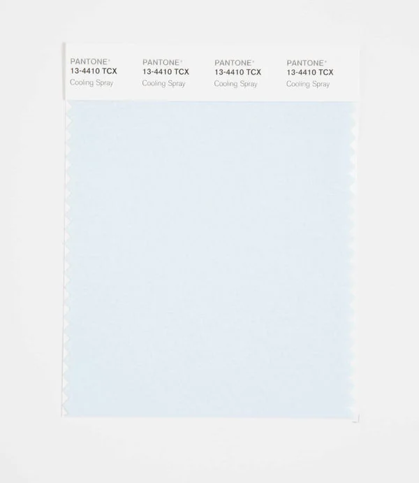 Cooling Spray is a light and airy color from the Pantone TCX collection, identified by the code 13-4410 TCX. This cool tone with its balanced character makes it an excellent choice for digital branding, tech products, and modern design.