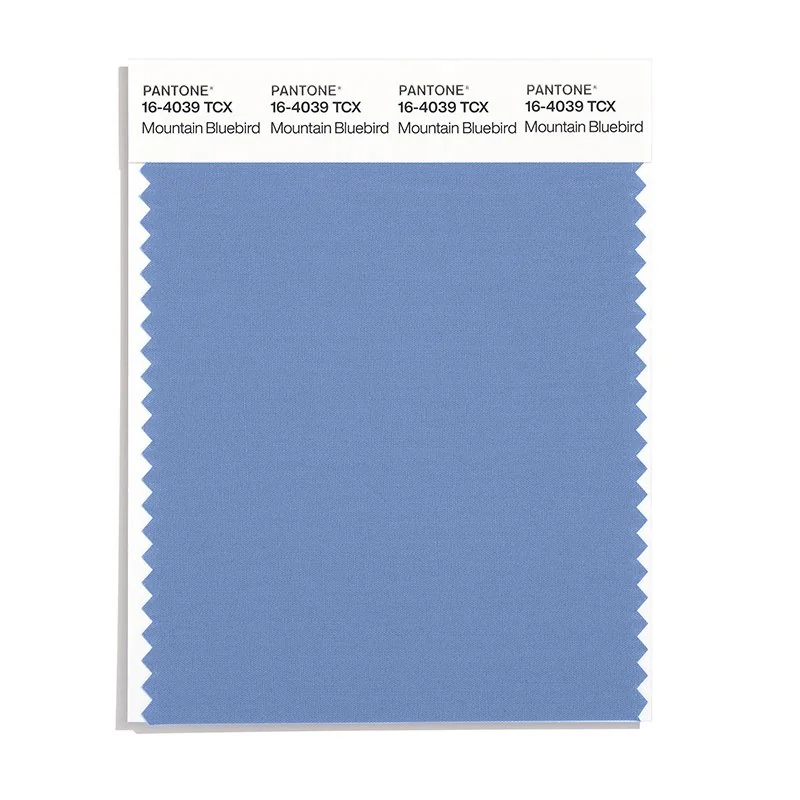 Mountain Bluebird is a medium-toned blue from the Pantone TCX collection, identified by the code 16-4039 TCX. This cool tone with its balanced character makes it an excellent choice for corporate branding, healthcare, and professional design.