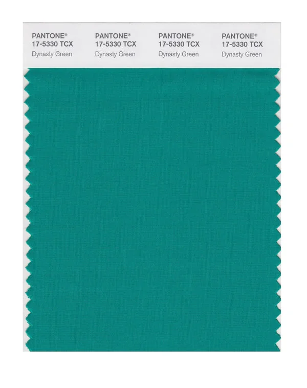 Dynasty Green is a deep and rich color from the Pantone TCX collection, identified by the code 17-5330 TCX. This cool tone with its vibrant and bold character makes it an excellent choice for wellness branding, spa environments, and serene design.