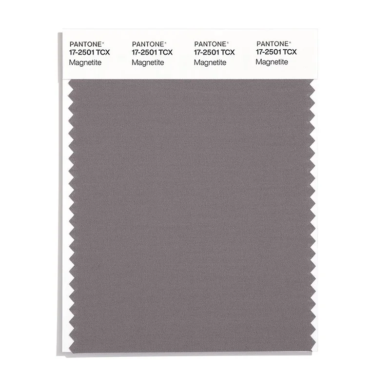 Magnetite is a medium-toned color from the Pantone TCX collection, identified by the code 17-2501 TCX. This warm tone with its balanced character makes it an excellent choice for sophisticated neutrals, urban design, and modern aesthetics.