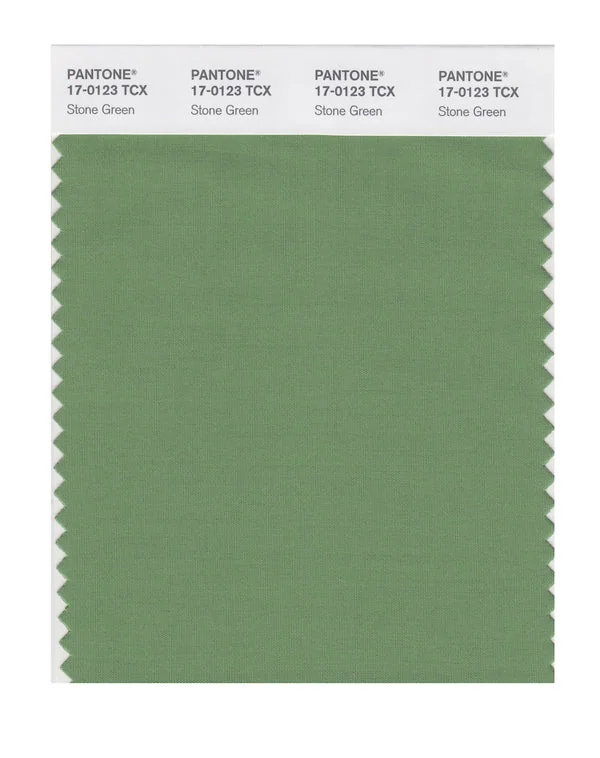 Stone Green is a medium-toned color from the Pantone TCX collection, identified by the code 17-0123 TCX. This cool tone with its balanced character makes it an excellent choice for wellness branding, spa environments, and serene design.
