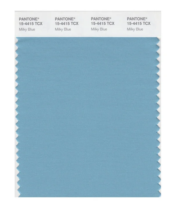 Milky Blue is a medium-toned color from the Pantone TCX collection, identified by the code 15-4415 TCX. This cool tone with its balanced character makes it an excellent choice for industrial design, modern architecture, and tech products.