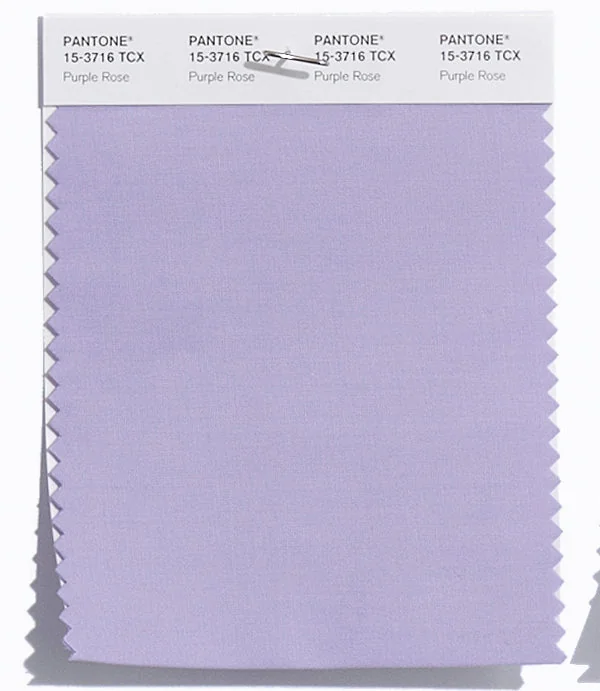 Purple Rose is a light and airy color from the Pantone TCX collection, identified by the code 15-3716 TCX. This cool tone with its balanced character makes it an excellent choice for soft elegance, baby products, and gentle branding.