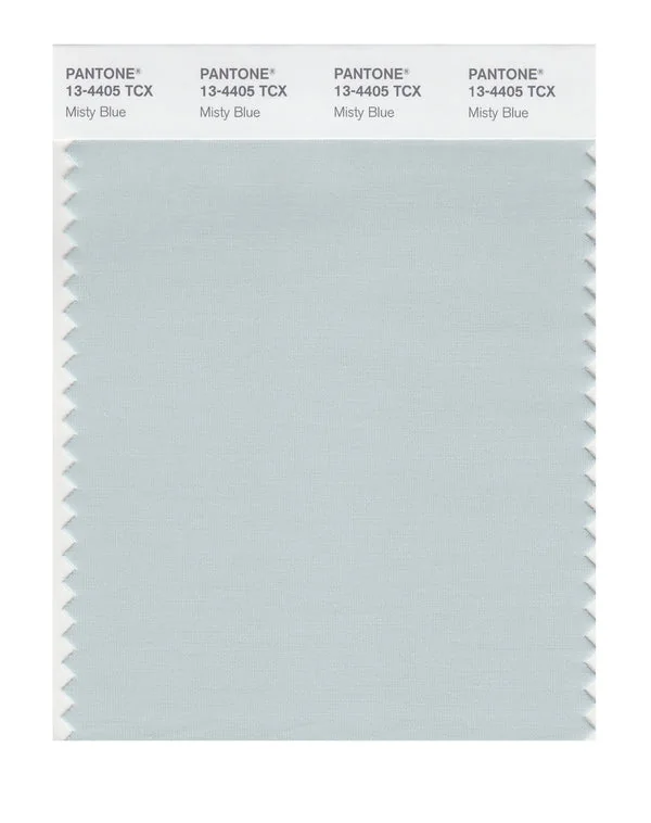Misty Blue is a light and airy color from the Pantone TCX collection, identified by the code 13-4405 TCX. This cool tone with its balanced character makes it an excellent choice for tropical themes, jewelry design, and exotic branding.