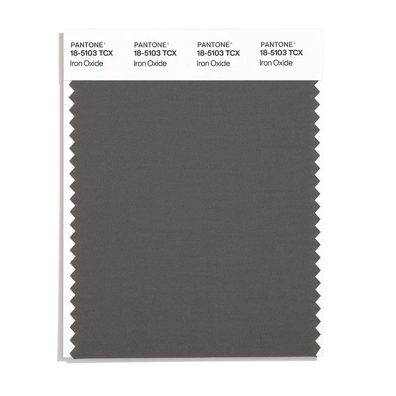 Iron Oxide is a medium-toned color from the Pantone TCX collection, identified by the code 18-5103 TCX. This warm tone with its balanced character makes it an excellent choice for sophisticated neutrals, urban design, and modern aesthetics.