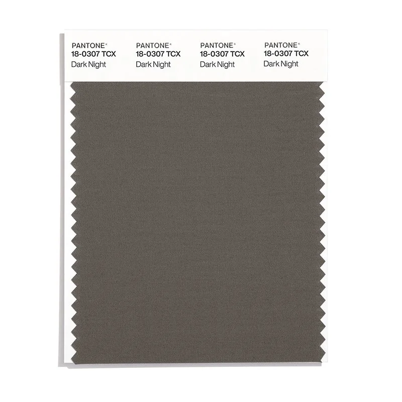 Dark Night is a medium-toned brown from the Pantone TCX collection, identified by the code 18-0307 TCX. This warm tone with its balanced character makes it an excellent choice for natural products, rustic design, and earthy branding.