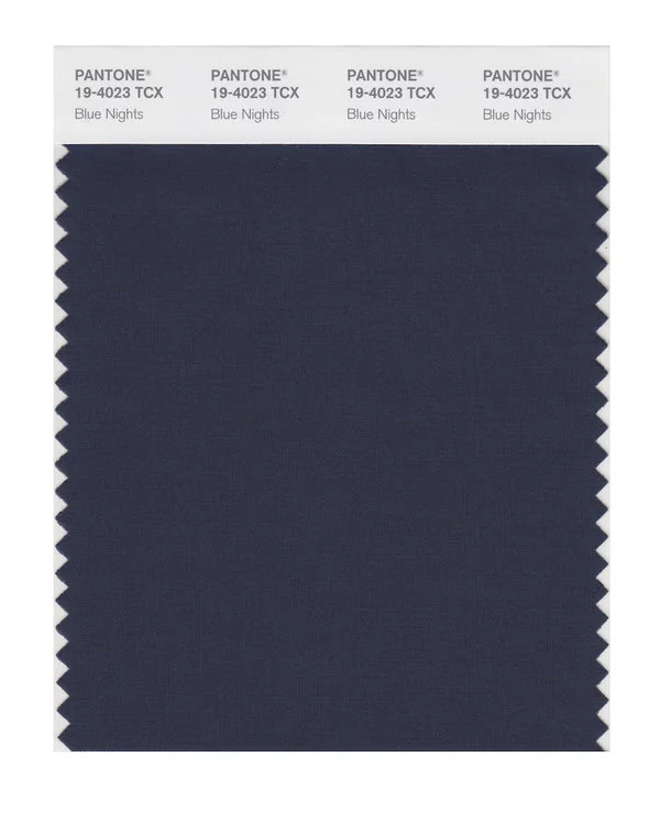 Blue Nights is a deep and rich color from the Pantone TCX collection, identified by the code 19-4023 TCX. This cool tone with its balanced character makes it an excellent choice for professional services, maritime themes, and classic design.