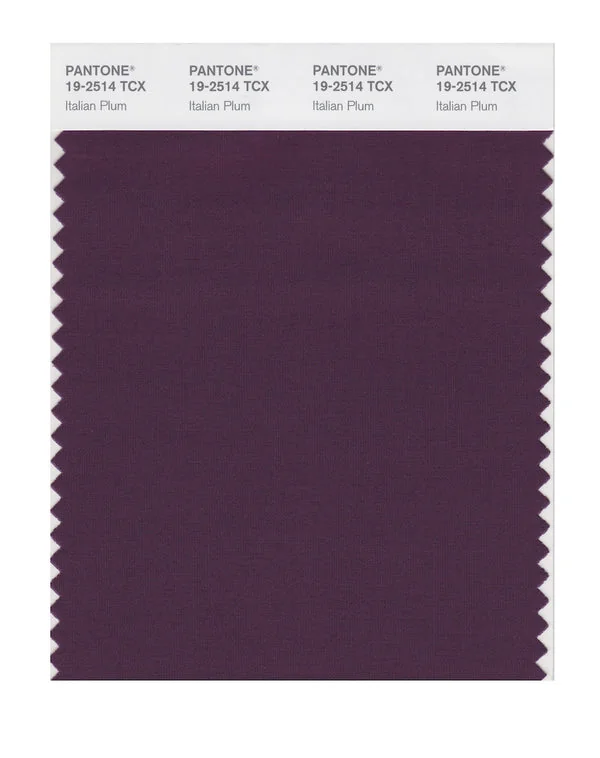 Italian Plum is a deep and rich color from the Pantone TCX collection, identified by the code 19-2514 TCX. This warm tone with its balanced character makes it an excellent choice for bold fashion, energetic branding, and statement design.