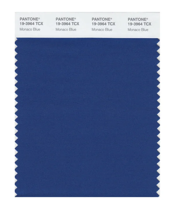 Monaco Blue is a medium-toned color from the Pantone TCX collection, identified by the code 19-3964 TCX. This cool tone with its balanced character makes it an excellent choice for premium branding, luxury services, and sophisticated design.