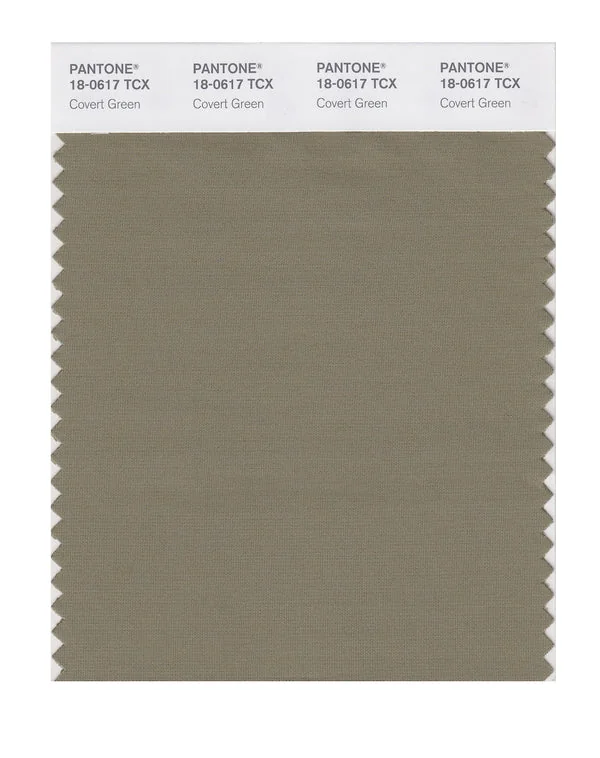 Covert Green is a medium-toned color from the Pantone TCX collection, identified by the code 18-0617 TCX. This warm tone with its balanced character makes it an excellent choice for warm luxury, artisanal products, and natural branding.