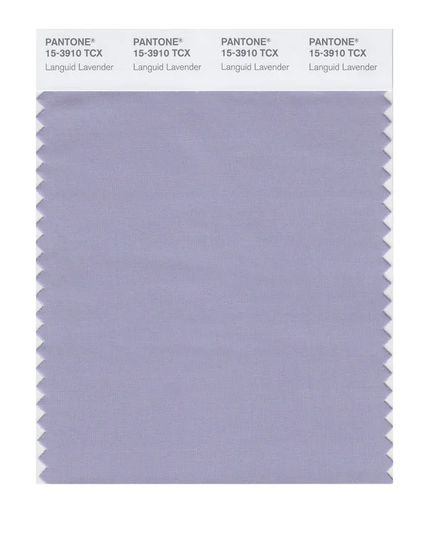 Languid Lavender is a medium-toned color from the Pantone TCX collection, identified by the code 15-3910 TCX. This cool tone with its balanced character makes it an excellent choice for soft elegance, baby products, and gentle branding.