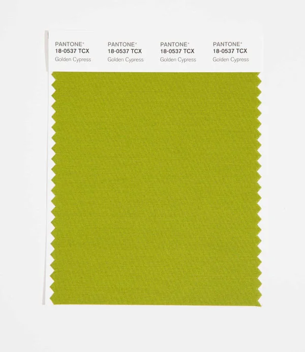 Golden Cypress is a medium-toned color from the Pantone TCX collection, identified by the code 18-0537 TCX. This cool tone with its balanced character makes it an excellent choice for natural products, military themes, and earthy design.