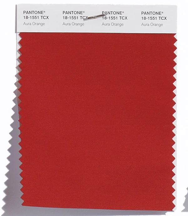 Aura Orange is a medium-toned red from the Pantone TCX collection, identified by the code 18-1551 TCX. This warm tone with its balanced character makes it an excellent choice for bold branding, passionate designs, and statement pieces.