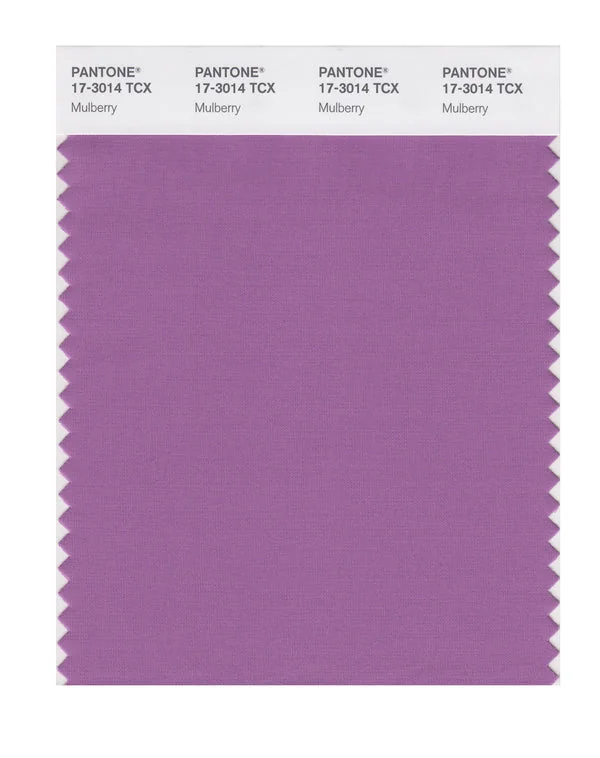 Mulberry is a medium-toned color from the Pantone TCX collection, identified by the code 17-3014 TCX. This warm tone with its balanced character makes it an excellent choice for bold fashion, energetic branding, and statement design.