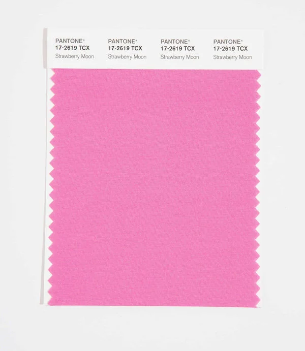 Strawberry Moon is a medium-toned color from the Pantone TCX collection, identified by the code 17-2619 TCX. This warm tone with its balanced character makes it an excellent choice for romantic branding, luxury beauty, and elegant design.