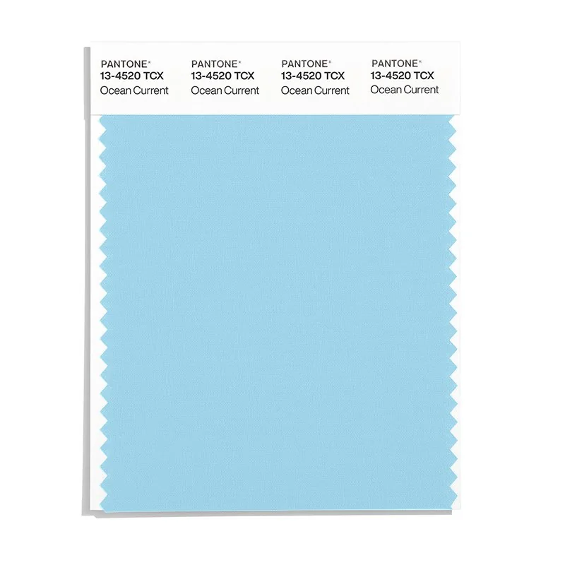 Ocean Current is a light and airy color from the Pantone TCX collection, identified by the code 13-4520 TCX. This cool tone with its balanced character makes it an excellent choice for digital branding, tech products, and modern design.