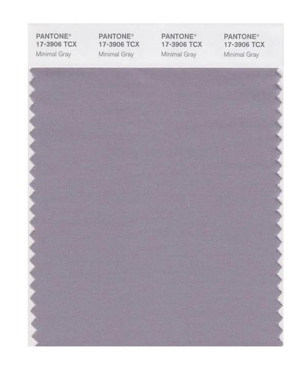 Minimal Gray is a medium-toned color from the Pantone TCX collection, identified by the code 17-3906 TCX. This cool tone with its balanced character makes it an excellent choice for luxury jewelry, wellness products, and mystical branding.