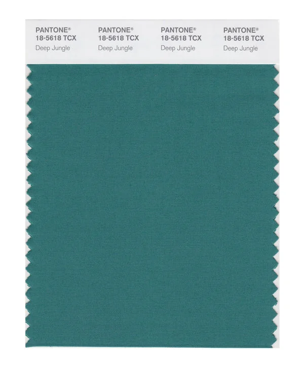 Deep Jungle is a medium-toned color from the Pantone TCX collection, identified by the code 18-5618 TCX. This cool tone with its balanced character makes it an excellent choice for wellness branding, spa environments, and serene design.