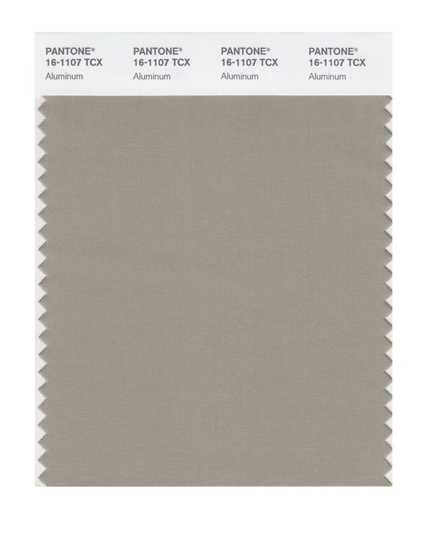 Aluminum is a medium-toned color from the Pantone TCX collection, identified by the code 16-1107 TCX. This warm tone with its balanced character makes it an excellent choice for warm luxury, artisanal products, and natural branding.