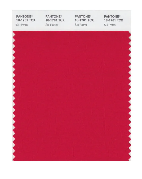 Ski Patrol is a medium-toned red from the Pantone TCX collection, identified by the code 18-1761 TCX. This warm tone with its vibrant and bold character makes it an excellent choice for bold branding, passionate designs, and statement pieces.
