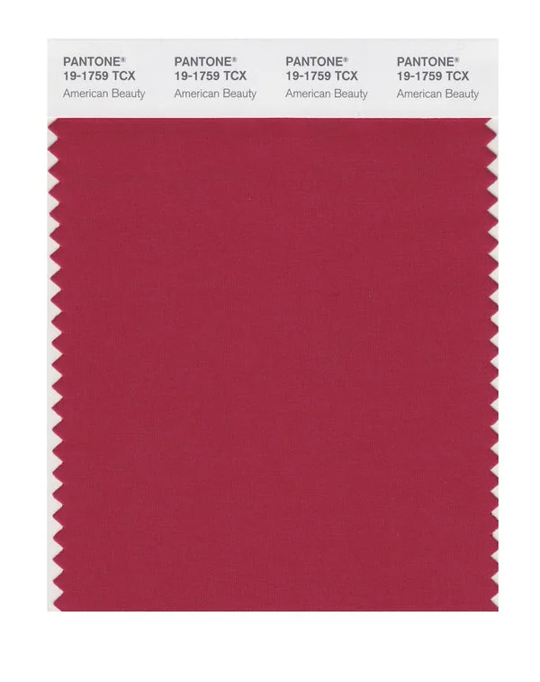 American Beauty is a medium-toned red from the Pantone TCX collection, identified by the code 19-1759 TCX. This warm tone with its balanced character makes it an excellent choice for bold branding, passionate designs, and statement pieces.