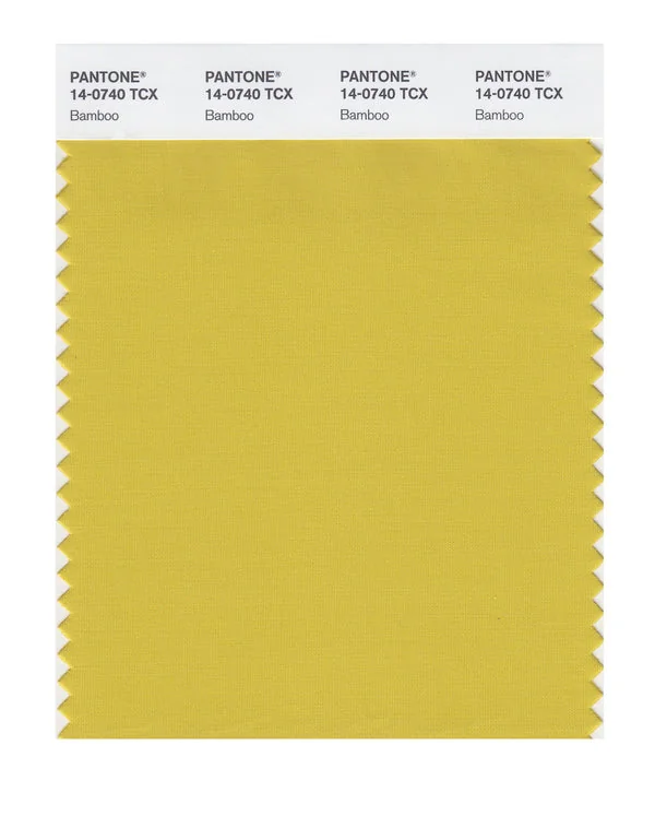 Bamboo is a medium-toned color from the Pantone TCX collection, identified by the code 14-0740 TCX. This warm tone with its balanced character makes it an excellent choice for warm luxury, artisanal products, and natural branding.