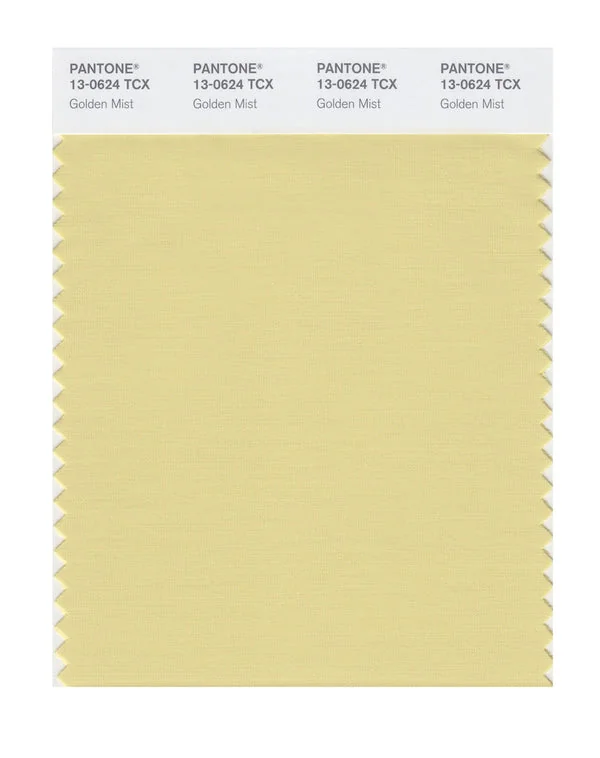 Golden Mist is a light and airy yellow from the Pantone TCX collection, identified by the code 13-0624 TCX. This warm tone with its balanced character makes it an excellent choice for optimistic branding, children's products, and energizing spaces.