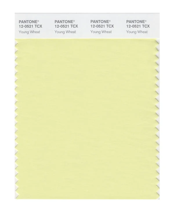 Young Wheat is a light and airy yellow from the Pantone TCX collection, identified by the code 12-0521 TCX. This cool tone with its balanced character makes it an excellent choice for optimistic branding, children's products, and energizing spaces.