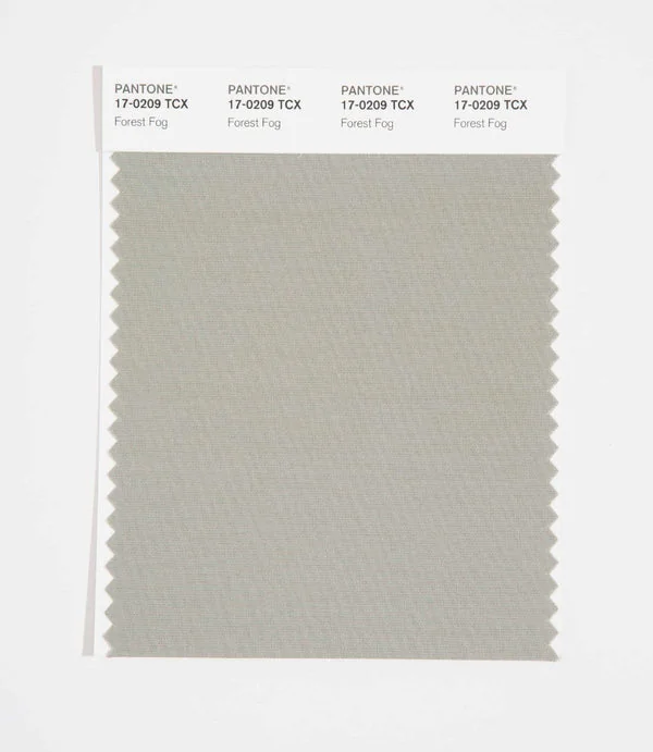 Forest Fog is a medium-toned color from the Pantone TCX collection, identified by the code 17-0209 TCX. This cool tone with its balanced character makes it an excellent choice for sophisticated neutrals, urban design, and modern aesthetics.