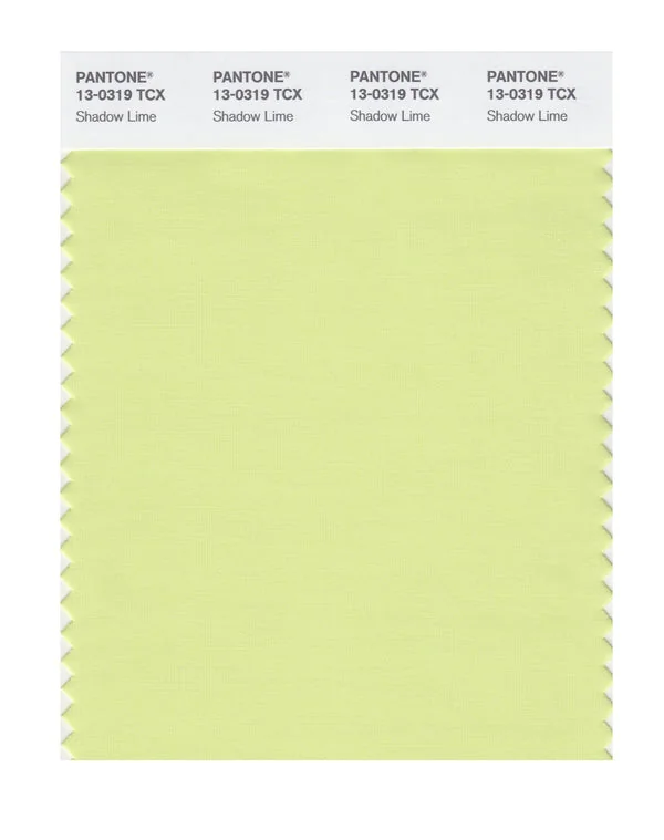 Shadow Lime is a light and airy color from the Pantone TCX collection, identified by the code 13-0319 TCX. This cool tone with its balanced character makes it an excellent choice for energetic branding, youth products, and vibrant design.