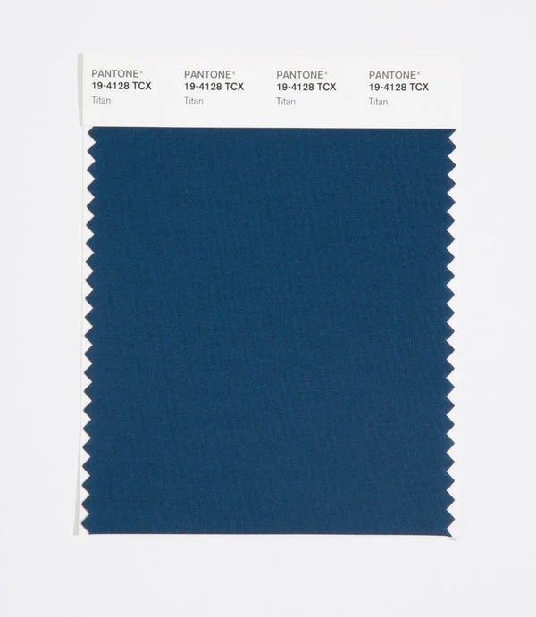 Titan is a deep and rich color from the Pantone TCX collection, identified by the code 19-4128 TCX. This cool tone with its balanced character makes it an excellent choice for professional services, maritime themes, and classic design.