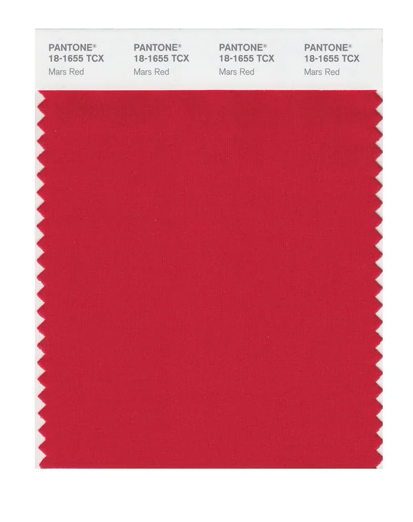 Mars Red is a medium-toned red from the Pantone TCX collection, identified by the code 18-1655 TCX. This warm tone with its balanced character makes it an excellent choice for bold branding, passionate designs, and statement pieces.