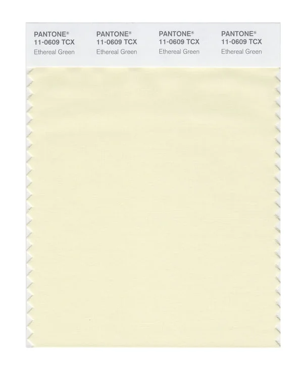 Ethereal Green is a light and airy color from the Pantone TCX collection, identified by the code 11-0609 TCX. This warm tone with its balanced character makes it an excellent choice for gentle optimism, baby products, and soft branding.