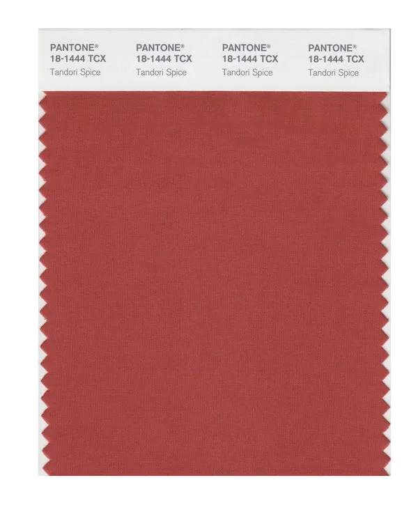 Tandori Spice is a medium-toned color from the Pantone TCX collection, identified by the code 18-1444 TCX. This warm tone with its balanced character makes it an excellent choice for luxury fashion, dramatic interiors, and premium branding.