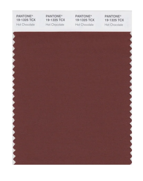 Hot Chocolate is a medium-toned brown from the Pantone TCX collection, identified by the code 19-1325 TCX. This warm tone with its balanced character makes it an excellent choice for natural products, rustic design, and earthy branding.