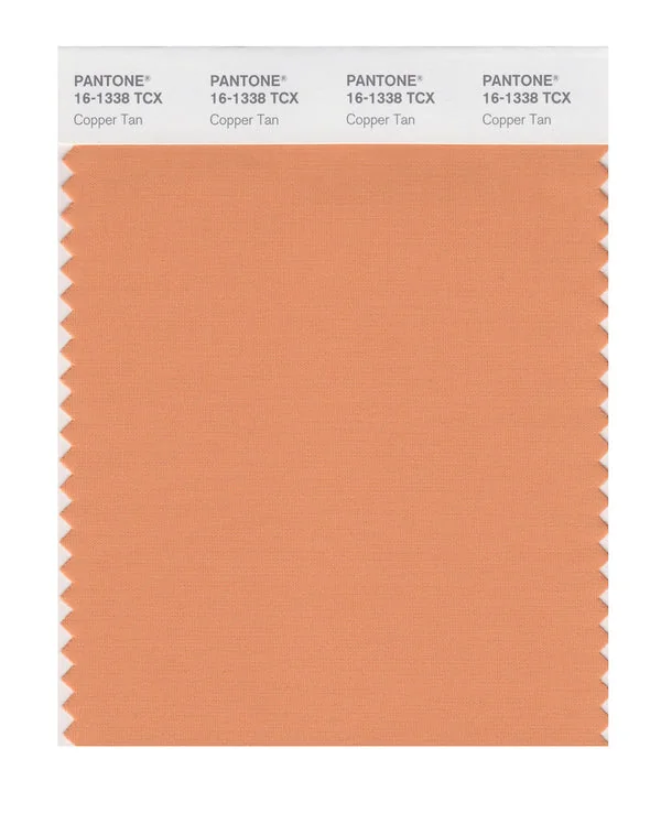Copper Tan is a medium-toned color from the Pantone TCX collection, identified by the code 16-1338 TCX. This warm tone with its balanced character makes it an excellent choice for soft femininity, wellness branding, and gentle aesthetics.
