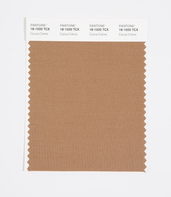 Cocoa Creme is a medium-toned orange from the Pantone TCX collection, identified by the code 18-1020 TCX. This warm tone with its balanced character makes it an excellent choice for energetic branding, autumn collections, and creative spaces.