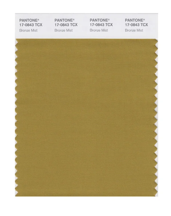 Bronze Mist is a medium-toned color from the Pantone TCX collection, identified by the code 17-0843 TCX. This warm tone with its balanced character makes it an excellent choice for warm luxury, artisanal products, and natural branding.