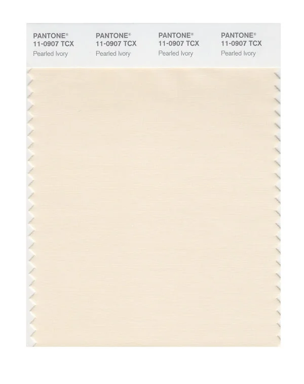 Pearled Ivory is a light and airy color from the Pantone TCX collection, identified by the code 11-0907 TCX. This warm tone with its balanced character makes it an excellent choice for soft warmth, wellness products, and gentle branding.