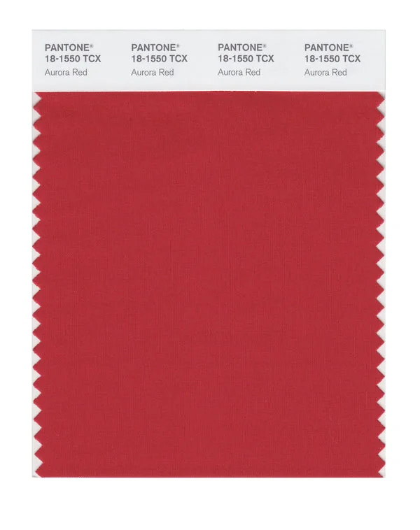 Aurora Red is a medium-toned color from the Pantone TCX collection, identified by the code 18-1550 TCX. This warm tone with its balanced character makes it an excellent choice for luxury fashion, dramatic interiors, and premium branding.