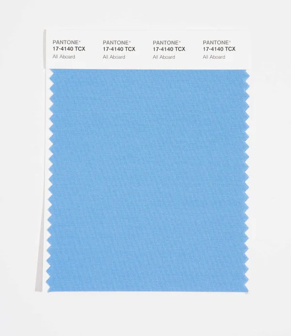 All Aboard is a medium-toned color from the Pantone TCX collection, identified by the code 17-4140 TCX. This cool tone with its balanced character makes it an excellent choice for industrial design, modern architecture, and tech products.
